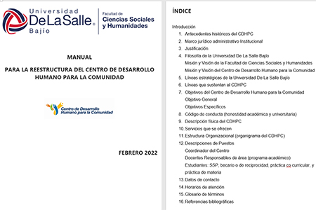 Estas actividades de reestructura administrativa están reflejadas en un manual de organización, que contiene su Misión, Visión y Valores, así como la estructura organizacional propuesta para la apertura de sus servicios desde los diferentes programas de la Facultad a nivel licenciatura (4) y posgrado (1).