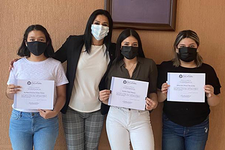 Ivanna Ofelia Ávila Uribe, Ivana Berenice Rivera Moreno e Itzel Alejandra Cervantes Villalpando, estudiantes de preparatoria del Campus Juan Alonso de Torres, conquistaron los tres primeros lugares, respectivamente, en el Concurso Cultural de Carteles que organizó la Secretaría de Seguridad Pública del Estado de Guanajuato.