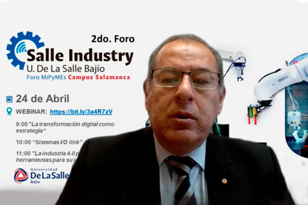 En colaboración con el Campus Salamanca y el Parque de Innovación, realizamos por segunda ocasión el Foro La Salle Industry 4.0, con el objetivo de promover y establecer vínculos con el sector privado y académico a fin de colaborar y facilitar la adopción de la Industria 4.0 en las empresas de la región.A través de plataformas digitales, tres especialistas compartieron sus conocimientos sobre la innovación y el futuro de la industria, hablando sobre transformación digital, sistemas IO Links; y la industria 4.0.