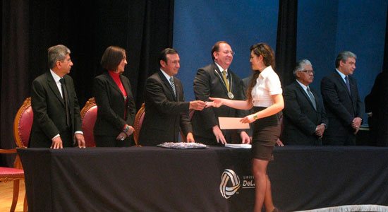 Encabezada por el Hermano Andrés Govela Gutiérrez, Rector de esta casa de estudios, la mesa de honor estuvo integrada por José Amonario Asiáin Díaz de León, Vicerrector; Adalberto Aranda Ramírez, Director de Formación Integral y Bienestar Universitario, así como por los Directores de cada uno de los programas reconocidos: Licenciaturas en Arquitectura, Derecho, Ingeniería Industrial, Ingeniería Electromecánica, Lenguas Modernas e Interculturalidad y Odontología; además del Profesional Asociado en Gastronomía y Técnico Superior Universitario en Expresión Gráfica Arquitectónica y Supervisión de Obra.