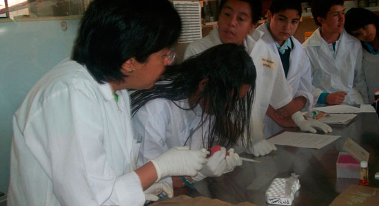 Las siguientes sesiones se están realizando en el Laboratorio del Departamento de Ciencias Médicas de la Universidad de Guanajuato. En la segunda sesión, los jóvenes revisaron conceptos relacionados con el ADN y la técnica TSNT para la extracción de ADN a partir de sangre. La práctica consistió en mostrar a los jóvenes como realizar el pipeteo para tomar el volumen de sangre requerido, estas muestras de sangre se obtuvieron de las muestras de una investigación previa; además, se les enseñó el funcionamiento de la centrifugadora y el procedimiento para la extracción de ADN a partir de sangre. Durante la tercera y cuarta sesión, los jóvenes aprendieron qué es la agarosa y cómo a través de ella pueden separarse moléculas de ADN mediante electroforesis, de igual forma se les mostró el procedimiento para preparar un gel de agarosa y el uso del termociclador. La siguiente sesión se realizará el sábado 16 de marzo.