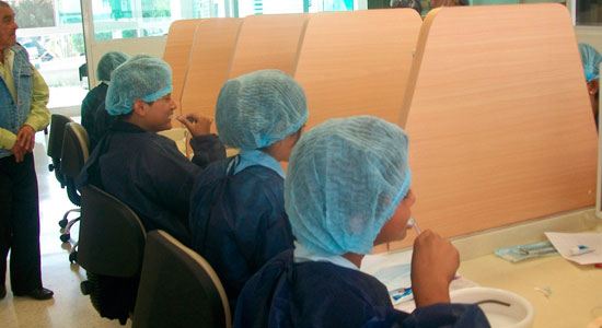 Actualmente los jóvenes han trabajado cuatro sesiones, en las cuales han revisado los diferentes conceptos teóricos y la realización de prácticas para reforzar los conocimientos. La primer sesión se realizó en la Clínica de la Facultad de Odontología de la Universidad De La Salle Bajío y se revisaron los conceptos teóricos sobre la placa dentobacteriana, caries y enfermedad periodontal; así como técnicas de cepillado, uso de hilo dental, selladores de fosas y fisuras, aditamentos especiales para higiene dental y detección de placa dentobacteriana de acuerdo a los criterios de la Organización Mundial de la Salud (OMS). Asimismo, a los jóvenes se les capacitó sobre el uso del material para detectar placa dentobacteriana y el llenado de los formatos para llevar a cabo el registro, después realizaron una práctica de diagnóstico de caries dental.