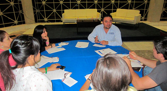 Alrededor de 60 personas se dieron cita a partir de las 19:30 horas en el Salón de los Cristales del Campus Campestre, en donde Daniel Aranda expresó que jamás se imaginó como empleado de alguna empresa, por lo que, al término de la carrera inició Aerolimps, un negocio de publicidad enfocado en la industria aérea.