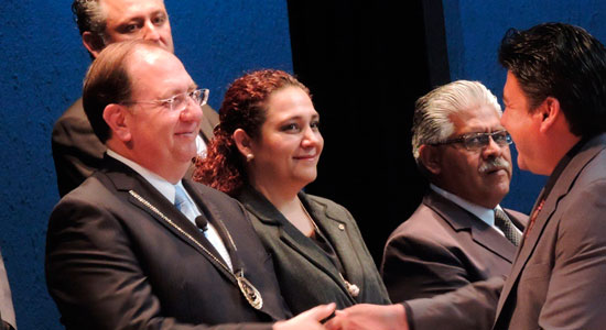 Tras la entrega de documentos, el Rector solicitó a los sustentantes ponerse de pie para la Toma de Protesta. “¿Protestan cumplir fiel y lealmente los deberes propios de la profesión cuyo título acaban de recibir?”, preguntó a los nuevos profesionistas, quienes con su mano al frente, aceptaron emocionados la condición de “si así lo hacen que la universidad, el estado y la nación se los premien y si no, que se los demanden”, señaló el también Presidente del Jurado.