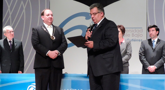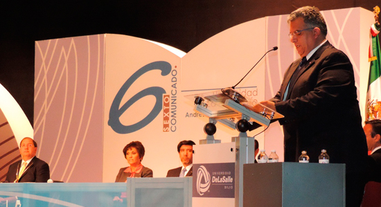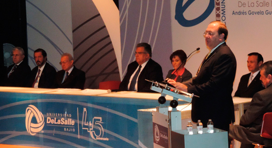 Andrés Govela Gutiérrez, Rector de la Universidad De La Salle Bajío, expuso los logros del ciclo 2012 - 2013 de esta Comunidad Lasallista. Durante la Ceremonia del 6º Comunicado, el Rector recibió por parte de la H. Junta de Gobierno la renovación de su nombramiento para dirigir la Institución por tres año más.