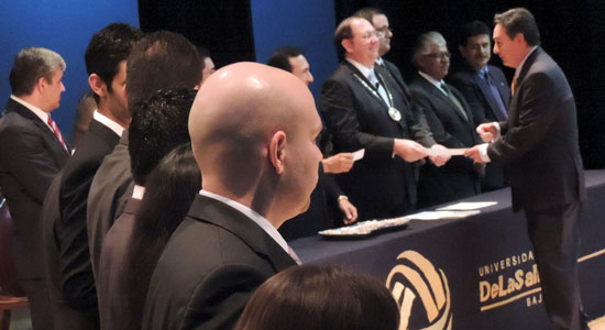 José Amonario Asiáin Díaz de León, condujo la imposición de la insignia institucional, acto breve, pero muy significativo para quienes sienten el orgullo de pertenecer a la Comunidad Lasallista. Con felicitaciones del Rector, la ceremonia concluyó entre aplausos y con la invitación a los egresados, para continuar su crecimiento personal y académico.