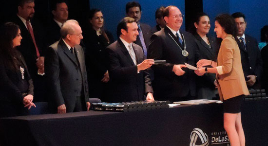 Luego de la entrega de títulos, se dio paso a la entrega de la Medalla Miguel Febres Cordero. Este reconocimiento es otorgado a los alumnos que obtuvieron el más alto promedio de su generación en Licenciatura o Posgrado. La Medalla se instituye con el nombre de este Santo Lasallista, primer Hermano De La Salle en América Latina que se consagra con votos perpetuos.