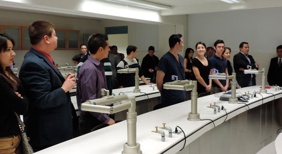Dr. Fandiño dio una explicación del funcionamiento de las nuevas instalaciones y de las posibilidades que tendrán los alumnos con ellas. El Laboratorio de Porcelanas está equipado con una unidad de trabajo completa para instructor, 13 unidades de trabajo completas para alumnos, unidades de aspiración alemanas, sistemas de iluminación con tecnología led griegos, cuenta con hornos de porcelana, de inyección y de desencerado, arenadores, steamers, sistema giroform austriaco para elaborar dados de trabajo, scanner nobel para realizar restauraciones CAD – CAM, 14 sillas ergonómicas para los usuarios y motores W&H austriacos.