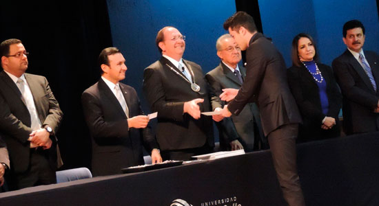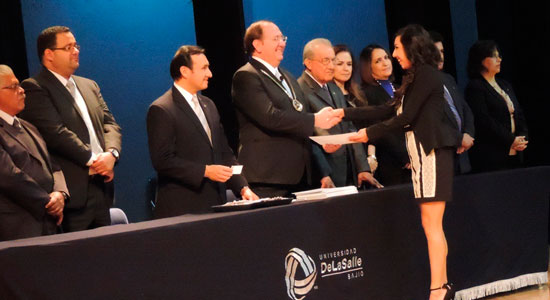 Tras la entrega de constancias a los ahora egresados, José Amonario Asiáin Díaz de León, dirigió la imposición de la Insignia Lasallista, acto muy significativo para quienes sienten el orgullo de pertenecer a esta Institución.