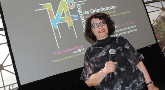 La conferencia con el tema “Vinculación Familia-Escuela en el proceso de orientación vocacional” fue dirigida por la Licenciada María del Pilar Romero López, Licenciada en Psicología por la UNAM, con Especialidad en Psicología Clínica y Psicoterapia de Grupos e Instituciones. En su haber, Pilar ha sido coautora de los libros: “Elección de carrera”, “Navegando por la adolescencia”; además de talleres como “Proyectando mi futuro”, “Orientación y Desarrollo para Padres de Familia”, “Cómo conformar Escuela para Padres en Instituciones Educativas”, entre otros.