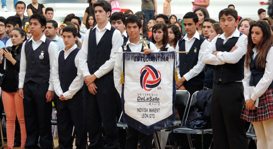 La Cancha principal del Universum Nostrum fue el escenario en el que se reunieron autoridades universitarias, alumnos, padres de familia y público en general. La mesa de honor estuvo conformada por Andrés Govela Gutiérrez, Rector de la Universidad De La Salle Bajío; José Amonario Asiáin Díaz de León, Vicerrector; Adalberto Aranda Ramírez, Director de Formación Integral y Bienestar Universitario; Mauricio Salvatori Morales, Director de la Escuela de Ingeniería Civil, Mecánica e Industrial; María Elena Macías Correa, Coordinadora de Desarrollo y Gestión Cultural; Verónica Del Rocío Lara López, Coordinadora de Solidaridad; Ana Laura Rodríguez Alatorre, Responsable de Grupos Estudiantiles y José Alejandro Stefanoni González, Responsable de Equipos Representativos.