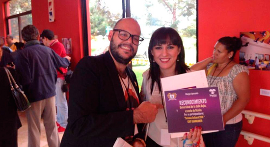 Marisela Esquivias, entregaron un agradecimiento a nuestra Universidad por la participación en la obra titulada “Discapacidad”, la cual es la intervención de un automóvil Volkswagen y una silla de ruedas.
