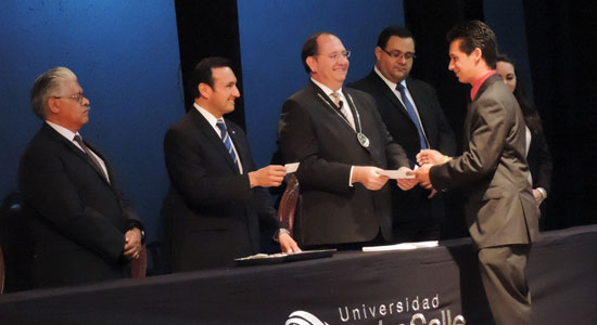 El Vicerrector, José Amonario Asiáin Díaz de León, dirigió la imposición de la insignia institucional, acto breve, pero muy significativo para quienes sienten el orgullo de pertenecer a la Comunidad Lasallista.
