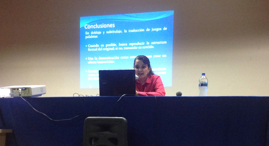 Durante su intervención, la Dra. Ramírez dio a conocer a los alumnos lo que significa ser un traductor audiovisual, los retos que este trabajo presenta y cómo ha logrado realizar traducciones exitosas. Así mismo, invitó a los alumnos a seguir preparándose y a perder el temor que representa el transmitir ideas de una lengua a otra.
