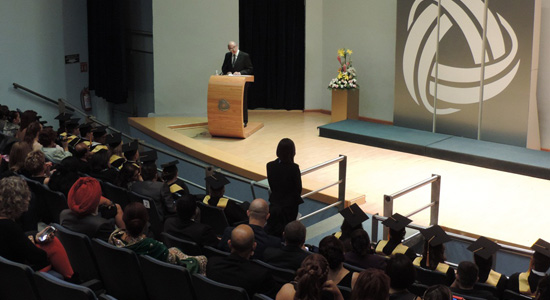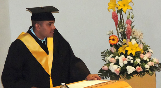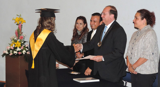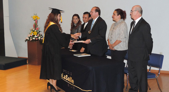 En un momento especial el Vicerrector, dirigió la imposición de la Insignia Institucional, acto en el que se fortalece el orgullo por ser parte de esta Universidad. Finalmente el Hermano Andrés Govela, dirigió una palabras a los presentes y felicitó a los ahora egresados.