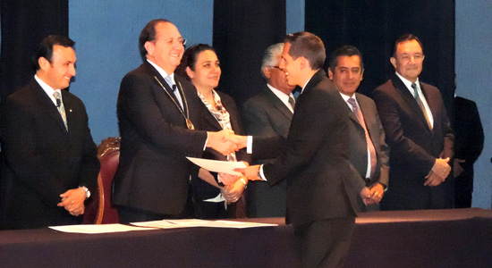 José Amonario Asiáin Díaz De León, vicerrector de esta casa de estudios, quien fungió como Secretario. Ambos acompañados de Directores de Facultades y Escuelas, así como de Unidades Administrativas.
