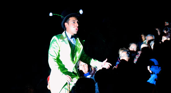 En punto de las 20:00 horas el escenario se llenó de luz y alegría, ante más de dos mil asistentes, quienes recibieron al grillito cantor, personaje interpretado por el actor Khalé Chriagop, quien con un toque especial animó a los espectadores en cada momento.