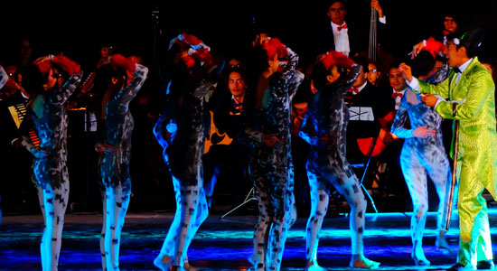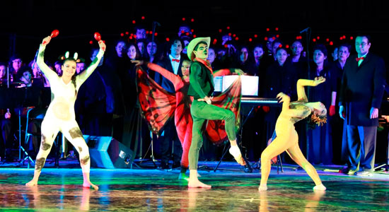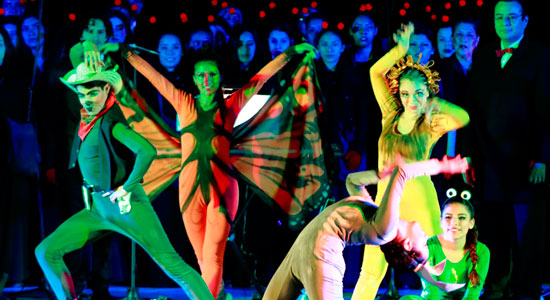 El cuerpo de baile lo conforma el Taller de Danza Contemporánea junto con alumnos y egresados que hicieron casting y que pertenecen a otros talleres dancísticos de la Universidad como: Ballet Clásico, Flamenco y Árabe, teniendo en total 17 bailarines, 15 de ellos mujeres y dos hombres. Por su parte, el Coro Polifónico está integrado por alumnos y cantantes externos, siendo 45 integrantes. La Orquesta está compuesta por 60 músicos de nuestras Preparatorias y de Licenciatura del Campus Campestre.