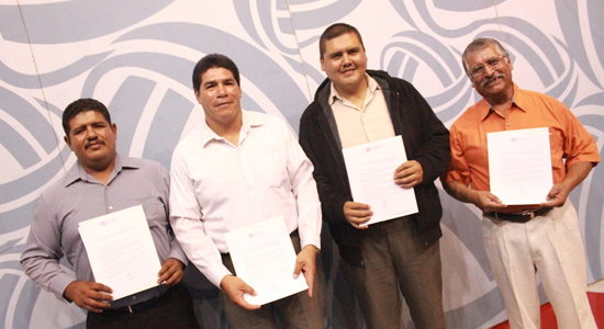 Los primeros homenajeados fueron 11 colaboradores que recibieron insignia de plata por cinco años de trabajo. La insignia de plata con rubí fue entregada 58 personas al cumplir 10 años de servicio. Para los 56 empleados que cuentan con 15 años de trabajo en esta Institución, se entregó la insignia de oro amarillo y esmeralda. La insignia de oro blanco y esmeralda, en alusión a 20 años de trabajo fue otorgada a 23 colaboradores. La insignia de oro amarillo y zafiro se dio a 17 personas con 25 años de trabajo.