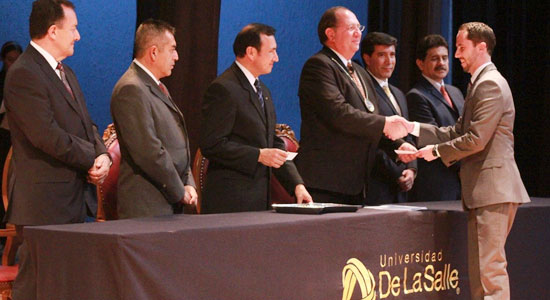 Previo al cierre de la Ceremonia, el Rector de esta Universidad, el Hno. Andrés Govela, compartió un mensaje con el auditorio, en el que exhortó a los graduados a desempeñar su profesión con un profundo sentido humano, siempre orientado al servicio, recordando que hay muchas personas que ejercen lo que han estudiado, pero no así verdaderos profesionales que impriman a su actividad laboral el toque del “ser persona”.