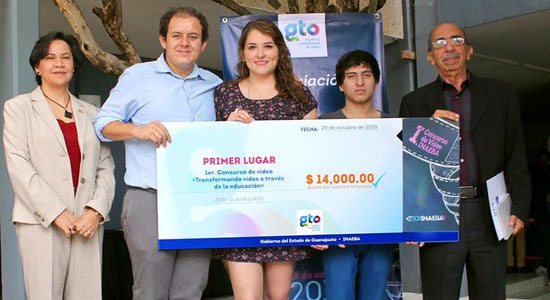 La ceremonia de premiación se realizó en la Universidad De La Salle Bajío, en ella estuvieron presentes la Mtra. Esther Medina Rivera, Directora General del INAEBA y Luis Enrique Zorrilla, Director de la Facultad de Comunicación y Mercadotecnia.