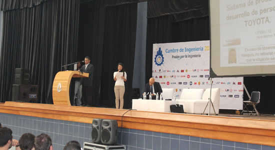 La “Cumbre de Ingeniería 2015” reunió a ponentes de talla nacional e internacional y a empresarios y directivos de organizaciones transnacionales que compartieron con los universitarios temas de gran interés. Destacó la charla impartida por Project Manager con el tema “Concom Renewable Energies”; además de la participación de Kenji Furukawa, Director de Hino Motors, empresa del Grupo Toyota y el mayor fabricante de camiones para servicio pesado y mediano en Japón; cabe señalar que esta empresa tiene también presencia a lo largo de África, Asia, América, Europa, Oceanía y Medio Oriente. Kenji Furukawa dirigió un espaci altamente emotivo y estimulante, en cada oportunidad que tuvo invitó a los estudiantes a contemplar como opción laboral a su corporación, seguro de que el beneficio puede ser mutuo al ser estudiantes formados en una Institución como esta y desarrollando profesionalmente en una empresa de este nivel.