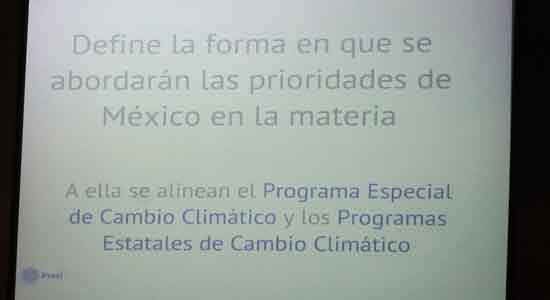 En su intervención “Estrategia Nacional Sobre Cambio Climático”, Tomás Hernández compartió con la audiencia los puntos principales de la política que, en materia de Cambio Climático, el Gobierno del Estado Mexicano ha puesto en marcha y está operando actualmente, destacando que, para lograr el preciso cumplimiento de la misma es imprescindible la colaboración de los otros dos órdenes de gobierno en el país: el estatal y el municipal. Enfatizó, además, en la importancia de la participación ciudadana, la integración de las empresas y las acciones inmediatas de la Sociedad Civil y la población en general.