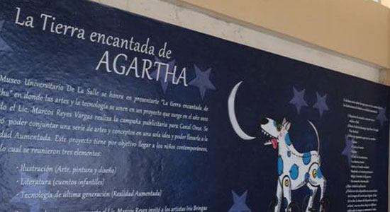 La obra “La Tierra Encantada de Agartha”, compartida en el Campus Salamanca de nuestra Institución, tiene por autores a Andrés Fernández, Iris Bringas y Marcos Reyes y estará hasta el 14 de mayo de este año. Se trata de una muestra donde las artes y la tecnología se unen en un proyecto que surge en el año 2012 cuando el Lic. Marcos Reyes Vargas realiza la campaña publicitaria para Canal Once. En ella se planeó conjuntar una serie de artes y conceptos en una sola idea y poder llevarla a la Realidad Aumentada. Este proyecto tiene por objetivo llegar a la población infantil contemporánea; para lograrlo se dispusieron tres elementos: