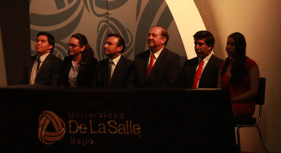 El presídium ante el cual rindió su informe de trabajo final Ana Beatriz Ovando Gómez, presidenta del Consejo General de Alumnos saliente en representación del resto de sus compañeros, estuvo integrado por el Hno. Andrés Govela Gutiérrez, Rector de la Universidad De La Salle Bajío; Arq. José Amonario Asiáin Díaz de León, Vicerrector; Hno. Néstor Anaya Marín, Director de Formación Integral y Bienestar Universitario; Alejandra Rentería Mena, Directora General de Licenciaturas y Jesús Édher Macdonel Guerrero, miembro del propio consejo saliente y presidente electo para el Consejo que esa misma mañana tomaría protesta para entrar en vigor.
