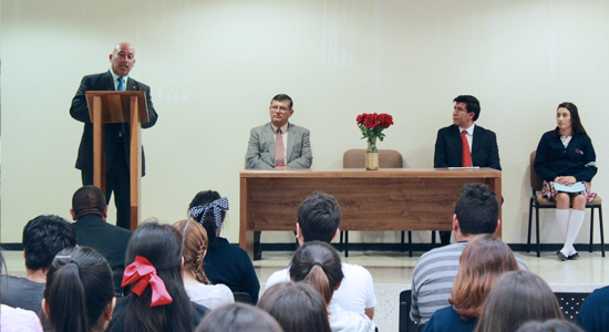Durante la ceremonia, el Director de Formación Integral y Bienestar Universitario, Hno. Néstor Anaya Marín exhortó a los alumnos a buscar la integración de todos los miembros de la Comunidad a través de las distintas actividades que la Mesa Directiva en su momento prometió a sus compañeros. Además agradeció el interés mostrado por parte de los alumnos que a partir de ese momento integraban el Consejo de Alumnos, por animarse a servir a la Comunidad en una era donde el interés por la política y el servicio público han perdido fuerza y deben avivarse en los jóvenes, como una premisa de compromiso y deber ciudadano.