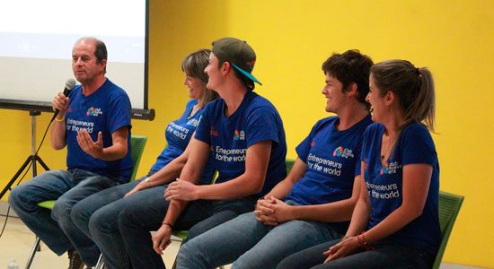 Los iniciadores del proyecto “Entrepreneurs for the World” (Emprendedores por el Mundo), hicieron una pausa en el Parque de Innovación donde hablaron sobre la iniciativa que les llevó a dejarlo todo y montarse en la camioneta familiar, para recorrer el mundo. El objetivo de su travesía, explicaron, consiste en reunirse con la mayor cantidad de emprendedores posibles para conocer sus propuestas y la manera en que las están llevando a cabo, para luego generar una red global que establezca conexiones entre personas que estén desdoblando proyectos similares, de tal manera que puedan compartir buenas prácticas y apuntalar sus labores.