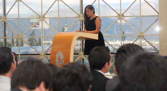 La alumna en Derecho Mayo Meza Trejo, en representación de sus compañeros realizó un discurso, quien con la voz entrecortada aseguró que “lo que hace diferente la educación en la Universidad es la Formación Integral”, compartió un agradecimiento a su Alma Mater por el acompañamiento que le brindó para que el compromiso social más que una actividad, fuera su estilo de vida.