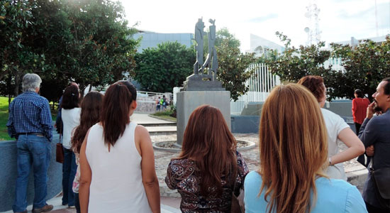 Posterior al recorrido en el andador cultural, se realizó una parada en la Plaza de la Fraternidad donde se ubica la pieza escultórica “Los Vigilantes” de Javier de Jesús Hernández, empleando unos minutos para admirar su simetría y se dio paso a la Facultad de Diseño, develando otra pieza escultórica de Ricardo Motilla Moreno nombrada “Mulata”; ambas esculturas de Bronce, forman parte del proyecto “Intervenciones escultóricas” el cual tiene como objetivo exponer en los espacios abiertos de este campus, la parte escultórica de la colección de la Universidad De La Salle y del Instituto Oviedo.