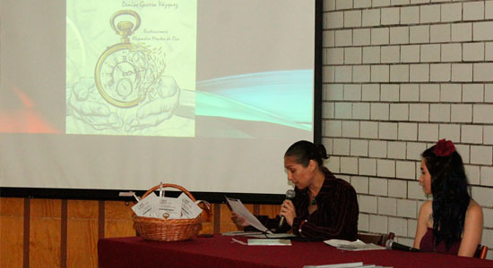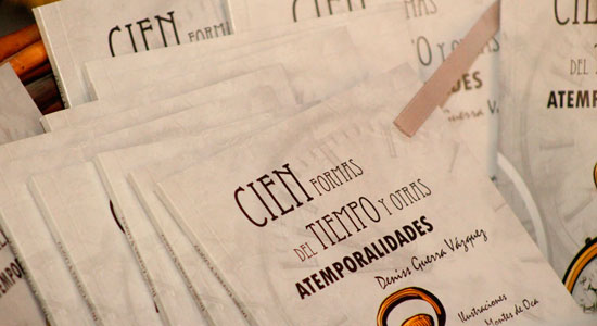 Dentro del programa de actividades que tiene la Biblioteca de nuestra Universidad, el pasado 18 de agosto con auditorio lleno, se presentó en el aula Guillermo Alba el Libro “Cien formas del tiempo y otras atemporalidades” por Deniss Guerra, quien logró gran empatía con los asistentes intercalando un performance que adornaba el “tiempo y sus atemporalidades” como lo mencionó Deniss.