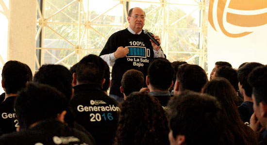 Posterior al emotivo mensaje, la charla paso a materializar la frase de “ponerse la camiseta” pues a cada alumno se le proporciona una playera como símbolo que lo distingue parte de la generación entrante y en un momento especial tanto autoridades como alumnos se la ponen, en esta ocasión la playera traía una pila al 100% cargada con el lema “soy100% De La Salle Bajío” en la parte frontal y en la parte trasera, “Generación 2016”.