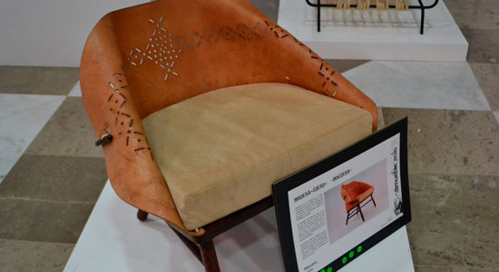 “Dure mucho tiempo, pensando en el nombre perfecto para silla, había días que solo lo dedicaba para pensar en el nombre hasta que un día junte los elementos de los que está hecha la silla y me salió Macuera” la silla ganadora tiene como materia prima principal una hoja de cuero cincelada, adjunta a una base de madera cosida con cuerda a mano por artesanos locales.