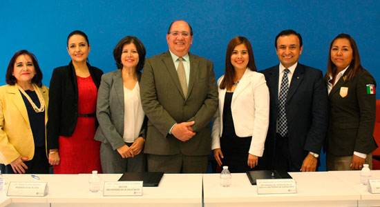 En representación de la Universidad, estuvo Andrés Govela Gutiérrez, Rector; José Amonario Asiáin Díaz de León, Vicerrector; Mariela Huerta Guerrero, Directora de la Facultad de Derecho; María Alicia Medina Vargas, Jefa de Internacionalización e Interculturalidad.