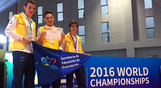 Ricardo Celis del Campus Juan Alonso de Torres, David Pedroza del Campus Américas y Daniel Jiménez del Campus San Francisco del Rincón, fueron los alumnos que tras meses de trabajo y dedicación representaron a la Universidad acompañados por Ma. Auxiliadora Arenas Hernández maestras de preparatoria.