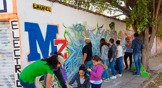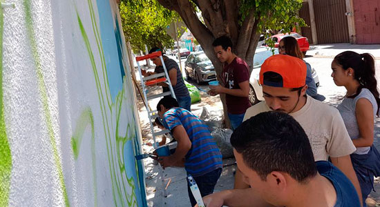 Liderados por el Muralista Orlando Bustos, alumnos de carreras como Arquitectura, Mercadotecnia, Agronomía entro otras, se dieron cita en conjunto con vecinos de la colonia para dar luz a la barda, descubriendo una nueva forma de aportar a nuestra sociedad desde sus capacidades artísticas.