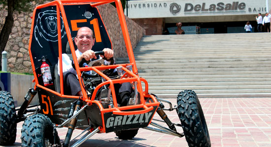 Cabe señalar que el vehículo al que han llamado “GRIZZLY” con el que se participó a nivel internacional, fue presentado ante la comunidad universitaria el 6 de abril, momento en el que Andrés Govela Gutiérrez; Rector, José Amonario Asiáin Díaz de León; Vicerrector y Alejandra Rentería; Directora General de Licenciatras , tuvieron la oportunidad de probarlo y dirigir un mensaje a quienes forman parte de este equipo y representaron a la Institución en Gorman.