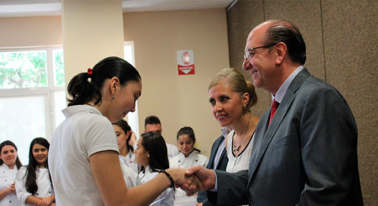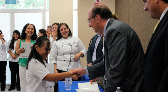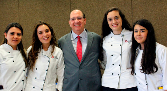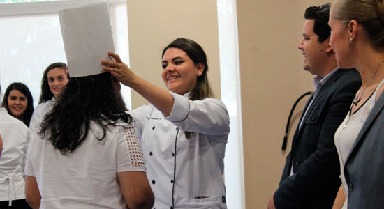 Durante la ceremonia de clausura además de un reconocimiento por su destacada participación, recibieron de manos de los alumnos de Gastronomía de forma simbólica un gorro de Chef.