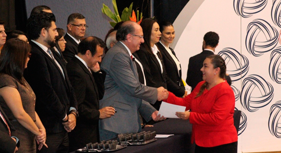 Los primeros homenajeados fueron 95 colaboradores que recibieron insignia de plata por cinco años de trabajo. La insignia de plata con rubí fue entregada 95 personas al cumplir 10 años de servicio. Para los 52 empleados que cuentan con 15 años en la Institución, se entregó la insignia de oro amarillo y esmeralda. La insignia de oro blanco y esmeralda, aludió quienes cumplen 20 años y fue otorgada a 14 colaboradores.