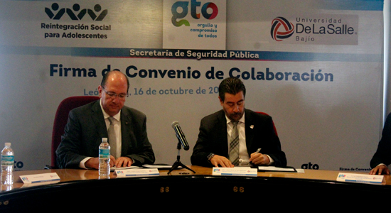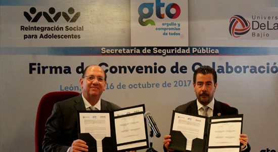 La mañana de este 16 de Octubre, la Universidad De La Salle Bajío, firmó convenio con el Centro de Reintegración Social para Adolescentes con el propósito de buscar mecanismos con los que a través de la colaboración interinstitucional proporcionen un servicio encaminado al desarrollo personal, la orientación, la reinserción y reintegración social y familiar del adolescente.