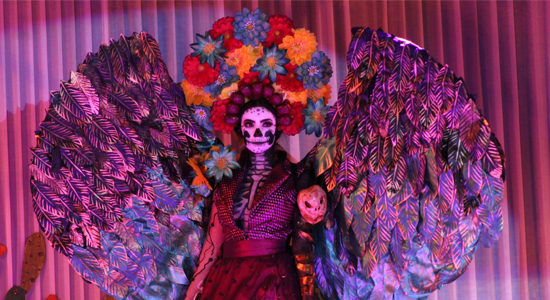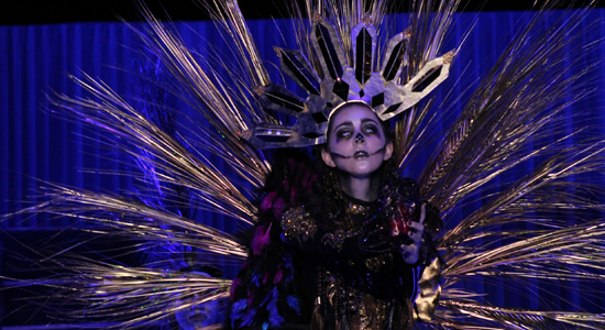 La presentación estuvo dividida en tres bloques presentando en un primer momento a la catrina Huitlacoche, misma que nos expuso a fue la gran diosa del maíz. Sol de vida y esperanza. Su nombre significa “siete serpientes” en náhuatl, proveedora del ciclo del maíz y diosa de la fertilidad en los terrenos agrarios.