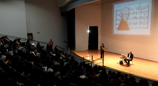 El Dueto Amadeus originario de la Ciudad de México, de los músicos Frida Fernández y Francesco Fabris presentaron para los alumnos de primer semestre de preparatorias de todos los campus y tercer semestre de secundaria; el concierto “Conociendo a Mozart”, haciendo un recorrido a través del tiempo para conocer la vida y obra del célebre músico, así como anécdotas y relatos que enriquecieron e hicieron apreciar el talento de Wolfgang Amadeus Mozart.