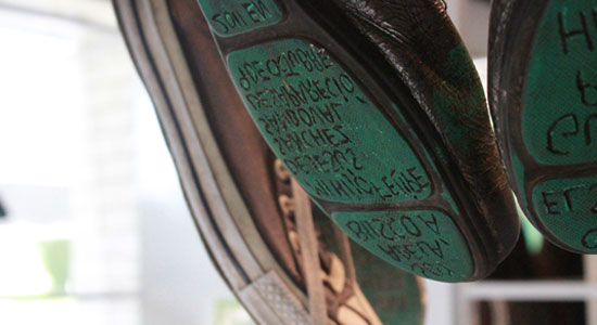 Dicha exposición es presentada con zapatos donados por los mismos familiares a quienes el colectivo, les solicita una carta de la que extraen un mensaje y la graban en la suela del mismo.