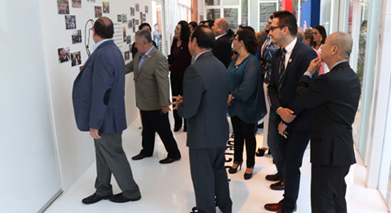Posterior al acto protocolario los asistentes iniciaron el recorrido de las mismas, iniciando en la sala flexi con la exposición “Una Comunidad en Construcción” en la que se ha dispuesto una línea de tiempo de 13mts de largo, la cual contiene datos históricos de la evolución de nuestra institución en la región: el surgimiento de escuelas en diferentes puntos de la ciudad y de la región, premios recibidos, cambios de nombre, surgimiento de carreras.
