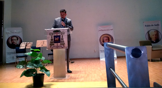 Hizo referencia a cinco grandes pedagogos que han dejado huella a lo largo de la historia, cuatro de ellos presbíteros los cuales son San Juan Bautista De La Salle, San Juan Bosco, San José María de Yermo y Parres y Pablo de Anda, éstos dos últimos sacerdotes de la ciudad de León, así como de Don Vasco Vázquez de Quiroga y Alonso de la Cárcel, Primer Obispo de Michoacán.