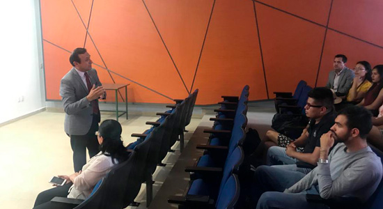 La bienvenida tuvo lugar en la Facultad de Ingenierías, y a ella acudieron el Mtro. José Amonario Asiáin Díaz de León, Vicerrector de esta institución, Dra. Alicia Zavala Berbena, Directora de Investigación, personal administrativo de la Dirección de Investigación e investigadores de diversas Facultades.