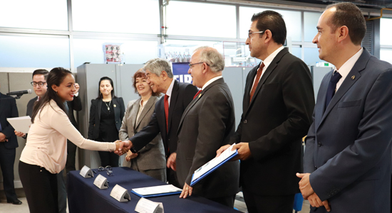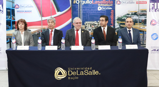 Durante la Firma de Convenio estuvieron presentes; el Hermano Marco Aurelio González Cervantes, Rector de la Universidad De La Salle Bajío; el Sr. Teruo Watase Ota, Director General se SMC México; el Ing. Sergio Angel Ruiz Ruiz, Gerente de Operaciones de la Empresa Adine; la Mtra. Ma. Socorro Durán González, Vicerrectora de esta Casa de Estudios y el Ing. Juan José Becerril De Anda, Jefe de la Unidad de Prácticas y Talleres.